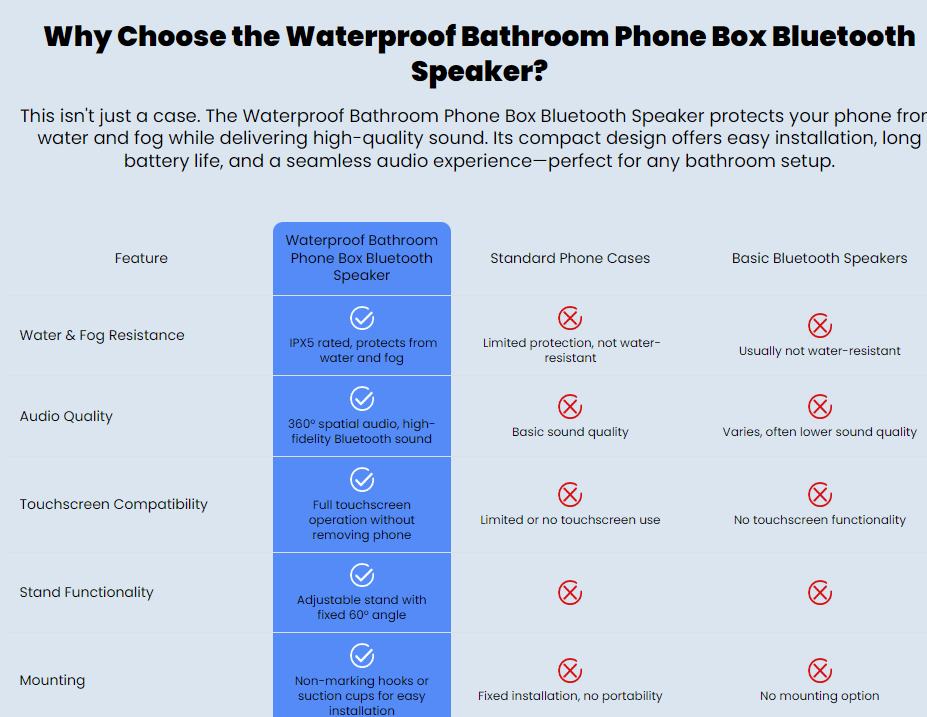 1. Unmatched Waterproof & Fog-Resistant Design Rated IPx5 waterproof, this speaker thrives in humid environments like bathrooms. Its unique cassette tape-inspired locking mechanism prevents accidental openings, keeping your phone safe from falls and splashes.
