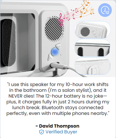 6. Long-Lasting Battery & Fast Charging with 12 hours of playback and 2-hour fast charging, this speaker keeps the music going all day. Low-power Bluetooth ensures stable connectivity.