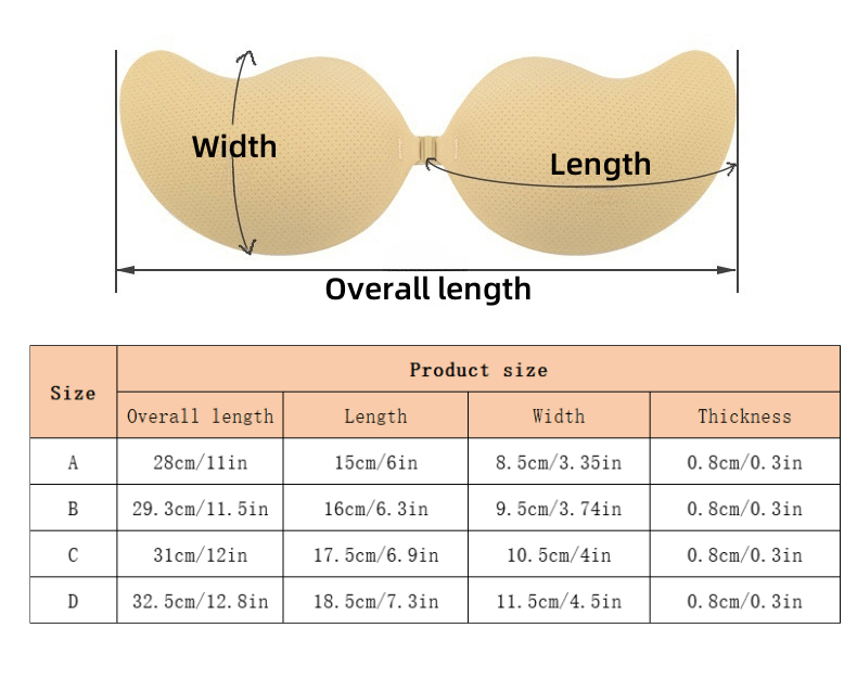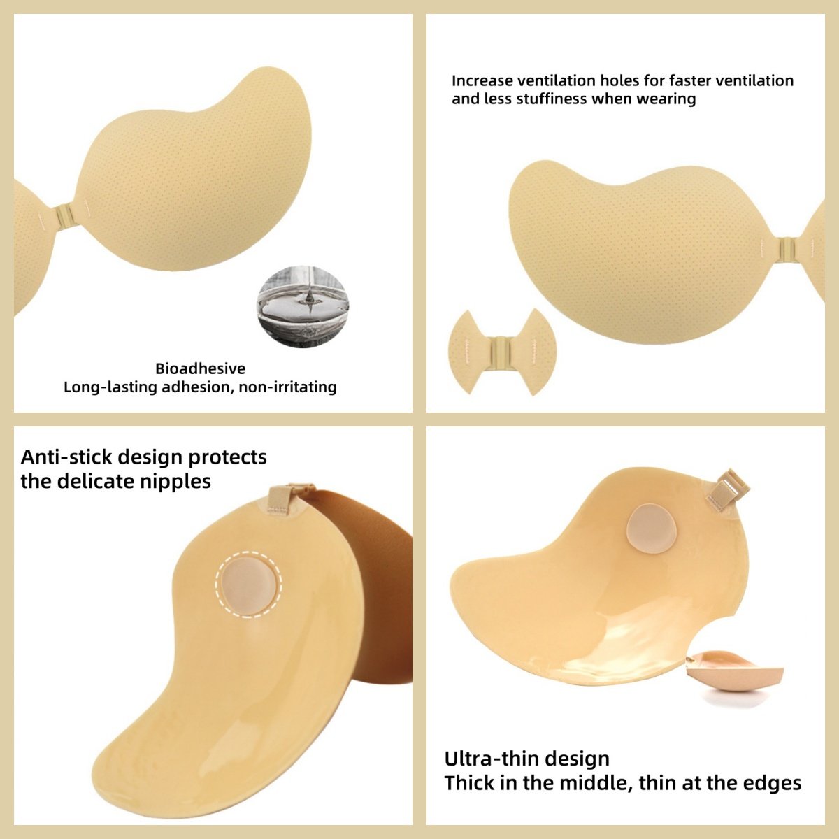 Skin-friendly & safe material:Our strapless bra is made of high quality soft fabric and skin-friendly silicone adhesive.Invisible bra can be attached to breast strongly in a good and comfortable position without worrying about falling off. Non-toxic, non-allergic, good air permeability, not stuffy ,does not cause any pain to the skin.
