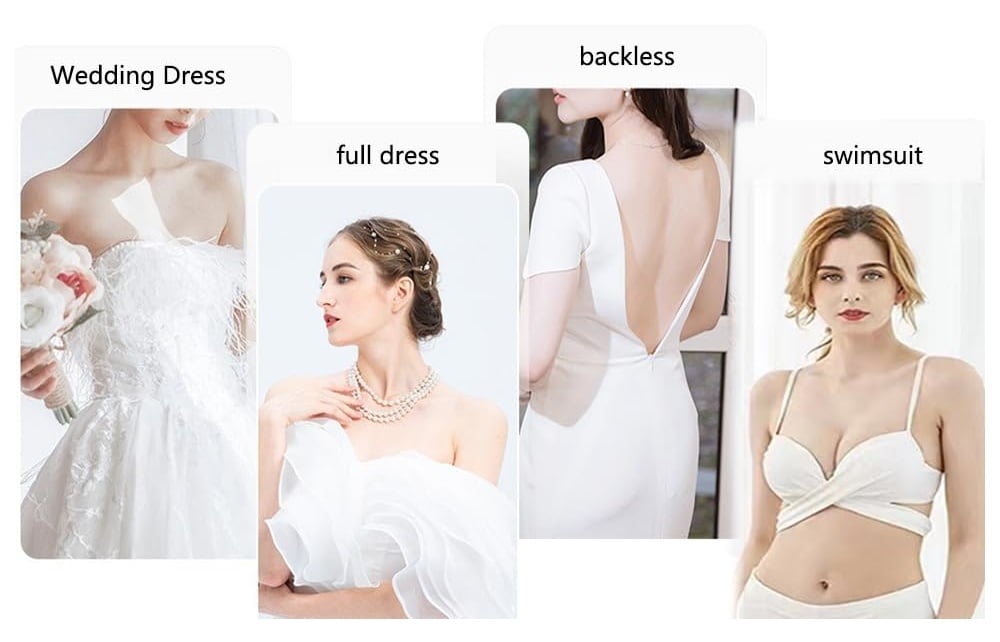 Widely Use Occasion:Invisible bra can be used in many occasions.Our bra is your Best choices when you wear backless dresses, off shoulder gowns, halter dress,wedding dresses, bikini and other clothing.No more embarrassing showing bra straps.