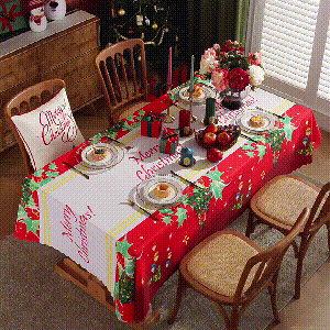 The SEED-HILL table cover features exquisite patterns of Xmas scene.The red flower,candy, pine cones and gold decoration balls look vivid and beautiful.